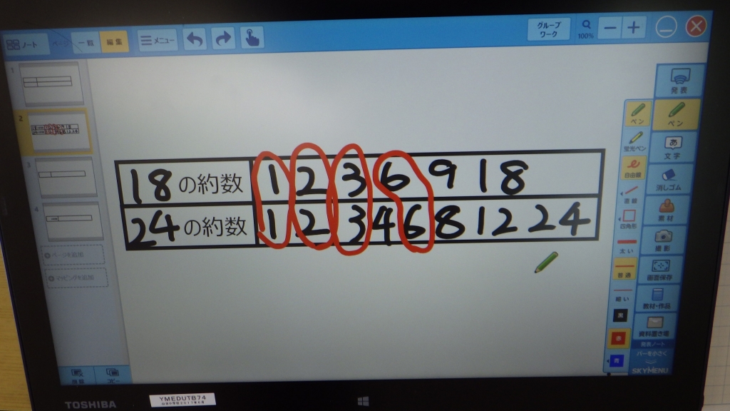 ・約数を探すための練習として、電子黒板を活用したかけ算クイズ