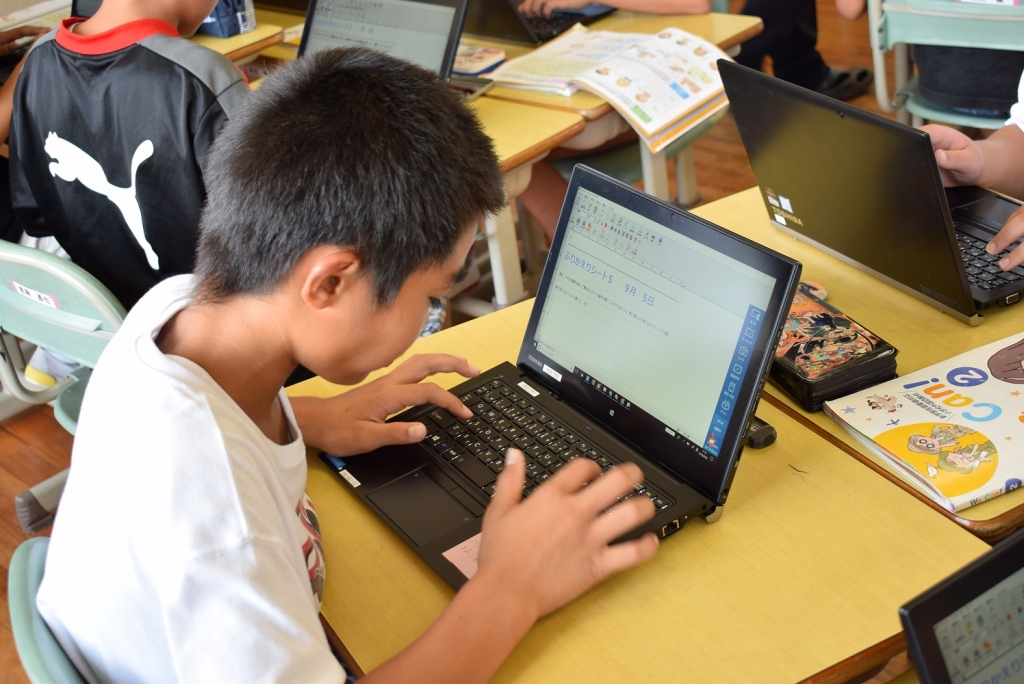 山江村では、主体的に学び合う児童生徒の育成を目指した授業の創造~「主体的・対話的で、深い学び」を支えるICT活用を通して~という3校で共通した研究主題のもと、日々の授業に取り組んでいます。
