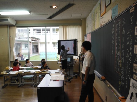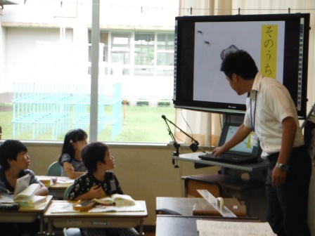 単元は「ありの行列」でした。今回の授業は、「段落の中心となる文や語句を読み取り、研究の成果を読み取ること」でした。電子黒板やタブレットPCなどを活用し、グループや全体で意見の共有を図りました。児童が、意欲的に発言したり、ノートにまとめたりしていました。今回の授業は、今後の校内研修の提案となる、貴重な授業となりました。