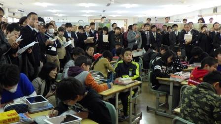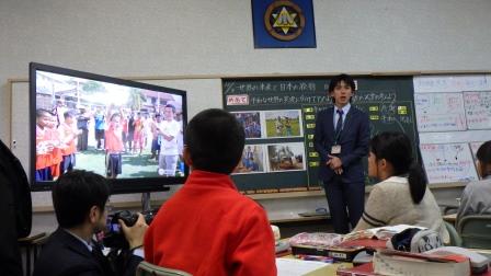 6年生社会科「世界の未来と日本の役割」では、東日本大震災で支援してくれた世界の人々の思いや願いに迫ることで、自分たちにできる国際協力について考える授業でした。課題別学習で取り組んだプレゼンテーション資料(A「世界各国からの支援」B「国際機関からの支援」C「日本がこれまで行ってきた支援」)を用いて、「どうして世界の国々は互いに支援・協力し合うのだろうか。」という課題について、学習グループでホワイトボードに考えをまとめました。その後、支援国の中には日本よりも厳しい環境に置かれている国々にたくさんあったという事象を提示し、自分たちはどんな思いや願いをもって国際協力に取り組む必要があるのか児童同士が真剣に議論しました。子どもたちの学びの質の高さはもちろんですが、自分たちで作成したプレゼンテーション資料の質の高さに大変驚かれていました。今の熱い気持ちをぜひ中学校につなぎ、「世界を明るい未来に変える」子どもたちに成長してほしいと思います。