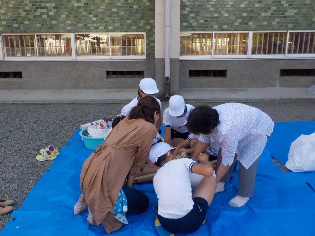 今日は、5年生がかかし作りをしました。保護者の方々も協力していただき、立派なかかしを作り上げることができました。