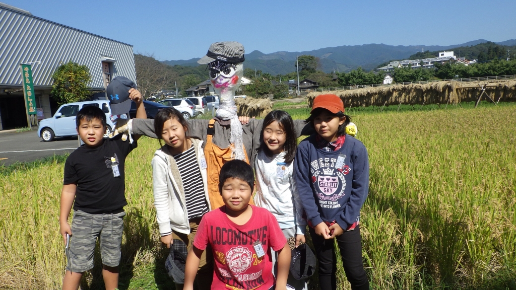 今日は、5年生がかかしを立てにいきました。自分たちで作ったかかしを、丁寧に立てている5年生の姿が見られました。