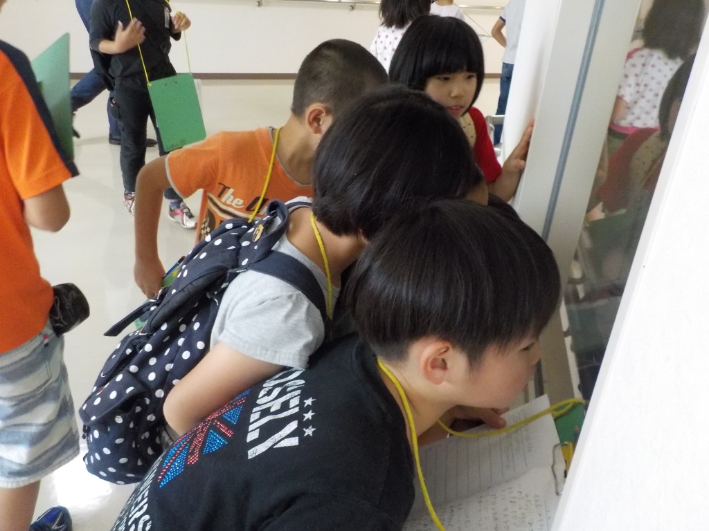 初めて見る機械に、子どもたちは興味津々でした!