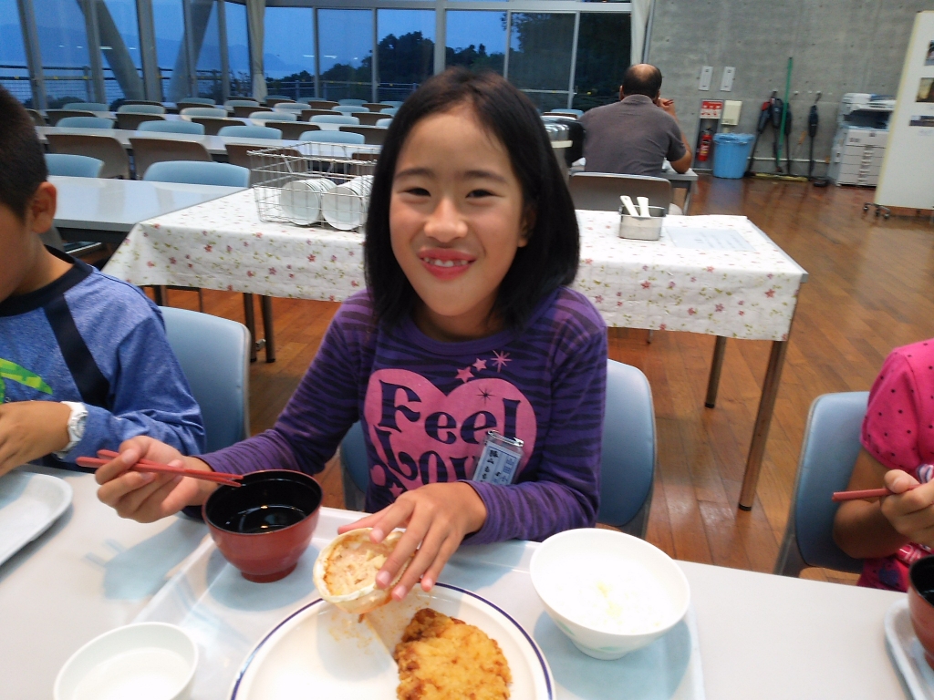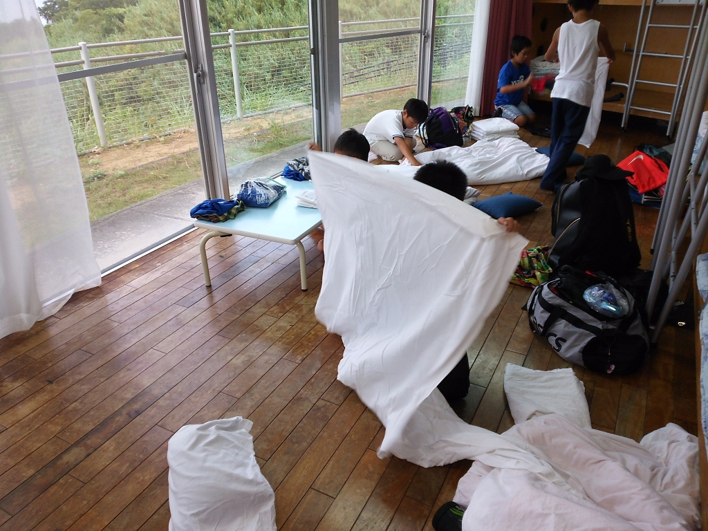 2日目を迎えました。子どもたちに「昨日は寝れましたか?」と聞くと、「寝ました」と答える子が多かったです。夜は話し声が聞こえなかったので、寝たとは思いますが。