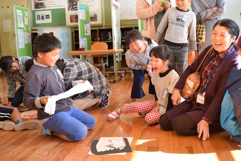 子どもたちには、事前に「本の題名とその本が読まれる場所」が書かれたプリントが配布されており(誰先生が読むかは秘密)、自分が聞きたいと思う場所に行き、読み聞かせの時間を楽しんでいました!!