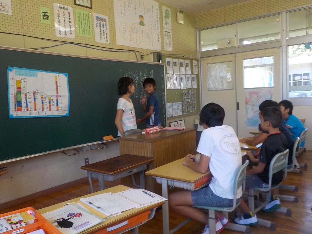 今日は、2学期の始業式があり、子どもたちにとっては、久しぶりの学校となりました。朝の教室内では、友だち同士で「夏休みの思い出」を話している姿があちらこちらで見られ、楽しそうな雰囲気でした。