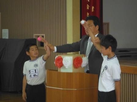 4月28日(月)に運動会の結団式がありました。赤団・白団も決まり、6年生の応援リーダーの気合いも十分です。これから運動会本番に向けて、昼休みや放課後の応援練習にも力が入ることでしょうね。下級生があこがれる応援合戦をぜひとも見せてもらいたいものです。