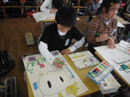 図工の時間に「歯磨き週間のポスターづくり」を行いました。2時間通しての図工でしたが、全く集中力が切れることなく作品づくりに取り組むことができました。さすが山田小の最高学年です。この「真剣さ!」すばらしい限りです。