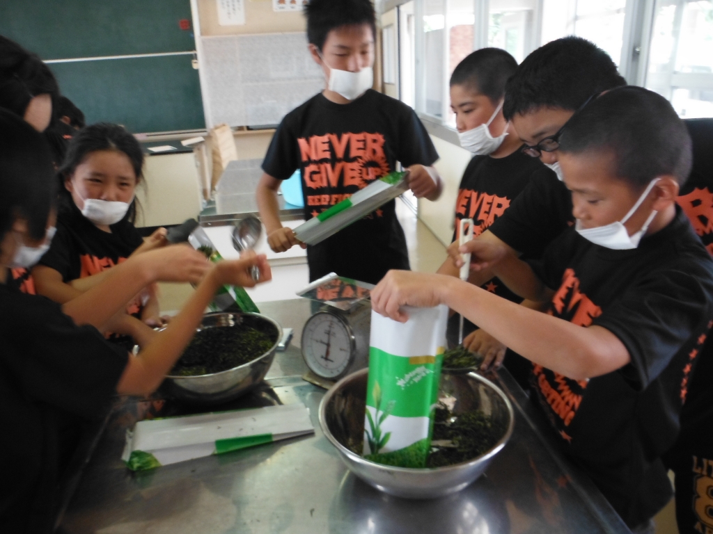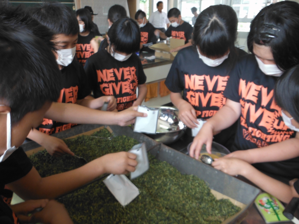 5月7日に摘んだお茶をパックに詰めました。10㌘用は全児童へ配布しました。また、その他のものは、保育園や老健施設などの関係機関へと配布します。きれいなお茶ができました。ぜひご家族で飲んでください。