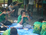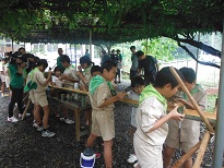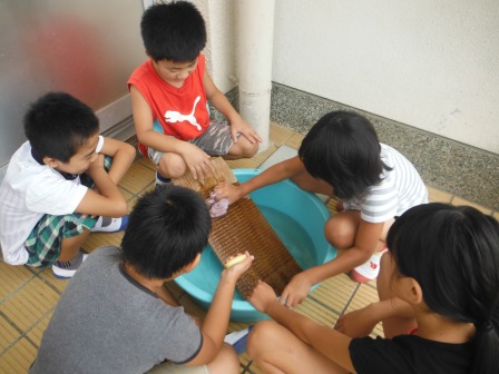 バーベキュウとそうめん流しの昼食のあとは、午後の活動です。