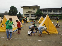 夕方は、テント設営と夕食作りに分かれて作業を行いました。