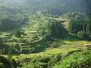 松谷地区の棚田が見える展望所まで歩きました。