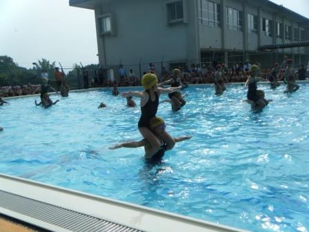 山田小校内水泳大会が9月12日(金)の学校に15デーに合わせて開催されました。今年は5・6年生で新しいシンクロを創り上げ、見に来ていただいた保護者の方々を楽しませることができました。一年間お世話になったプールへもしっかりと感謝の気持ちを伝えることができました。