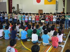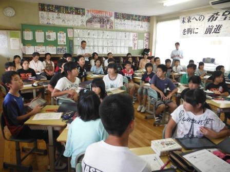 次に、9月8日から「出産」のためお休みに入られる、中村先生に話をしていただきました。常に子どもたちのことを大切に考えていただいた先生とのお別れに、寂しい気持ちを抑えきれない子ども達でした。「かわいくて元気な赤ちゃん」が産まれることを願っています。