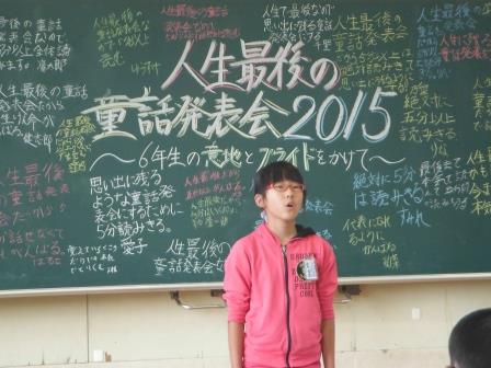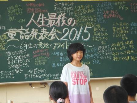 先日行われた発表会で、すばらしい発表をしてくれた各学年代表の6人に