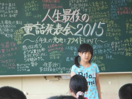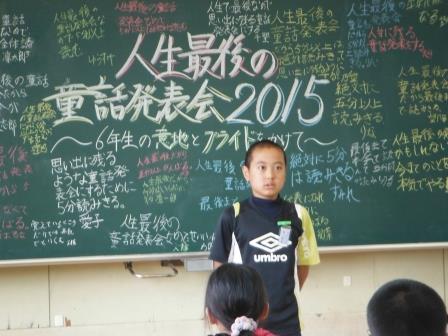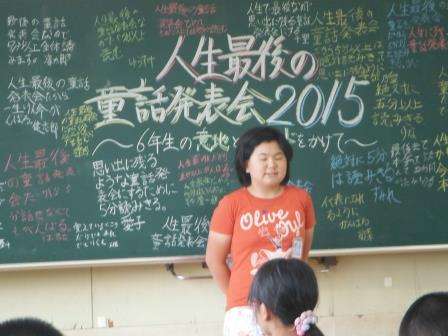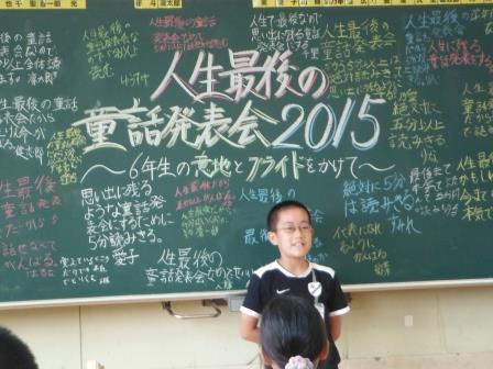 6月12日(金)に6年生の学級童話会を行いました。みんな今日の日のために一生懸命練習を重ねてきました。「人生最後の童話発表会」ということで、全員が5分以上読み切ることを目標に、チャンピオンコースとチャレンジコースに分かれ発表会を行いました。チャンピオンコースの子どもたちのレベルの高さにびっくり!代表になった児童は6月19日に行われる校内童話発表会に出場します。