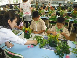 みどりの少年団は、フラワーアレンジに挑戦しました。