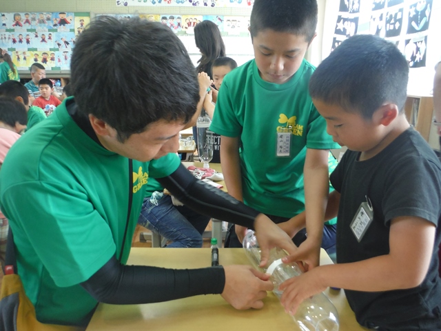 親子ふれあい学習は、ペットボトルロケットや勾玉づくりなど