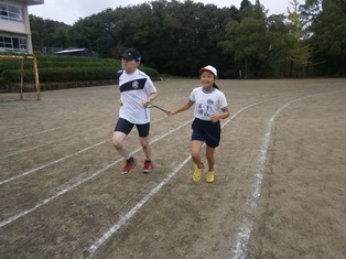 絆のリレーでは、一つのタスキをつなぎながら、リレーで運動場を走りました。