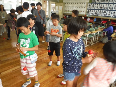 児童会活動では保護者の方も一緒に昔遊びをしました。