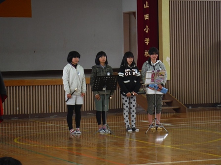 保護者、地域の皆様、明けましておめでとうございます。皆様におかれましては、ご家族おそろいで、すばらしい新年を迎えられたことと思います。旧年中は大変お世話になりました。皆様のおかげで、すばらしい成果をもって1年を終わることができました。また、本年も昨年以上の充実した年になるよに職員一丸となって山田小の子どもたちの夢の実現に向けて頑張っていきたいと思います。今年1年、皆様のご支援とご協力を宜しくお願いします。