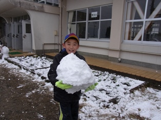 急きょ、朝の活動として縦割り班活動を入れ、雪遊びをしました。