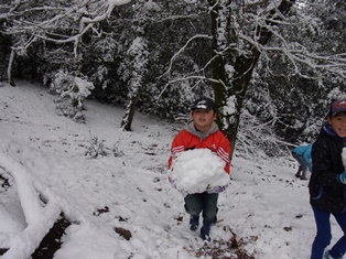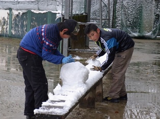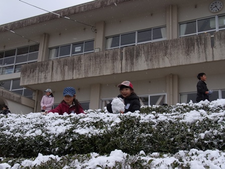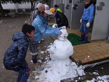 子どもたちだけでなく、先生も一緒になって今年の初雪を楽しみました。