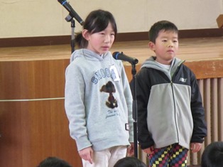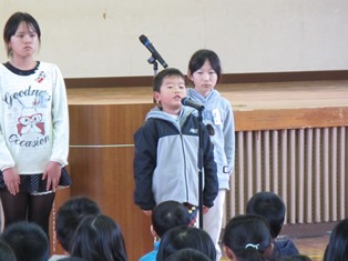 3人の児童が、冬休みの思いでとこれからの目標を発表してくれました。