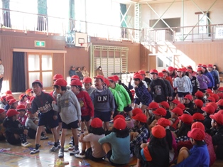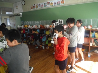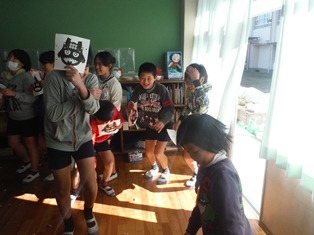 本日は、節分ということで、お昼休みに6年生が鬼になり、1年生の教室へ♪