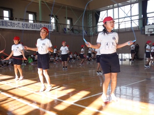 前跳びや後ろ跳びや交差跳びなど、さまざまな跳び方を、