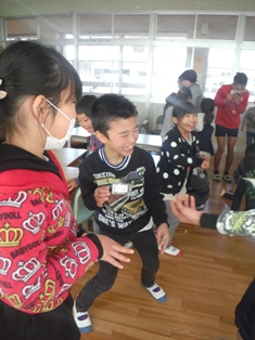 最後は、6年生と一緒に豆を拾ってお片付け。