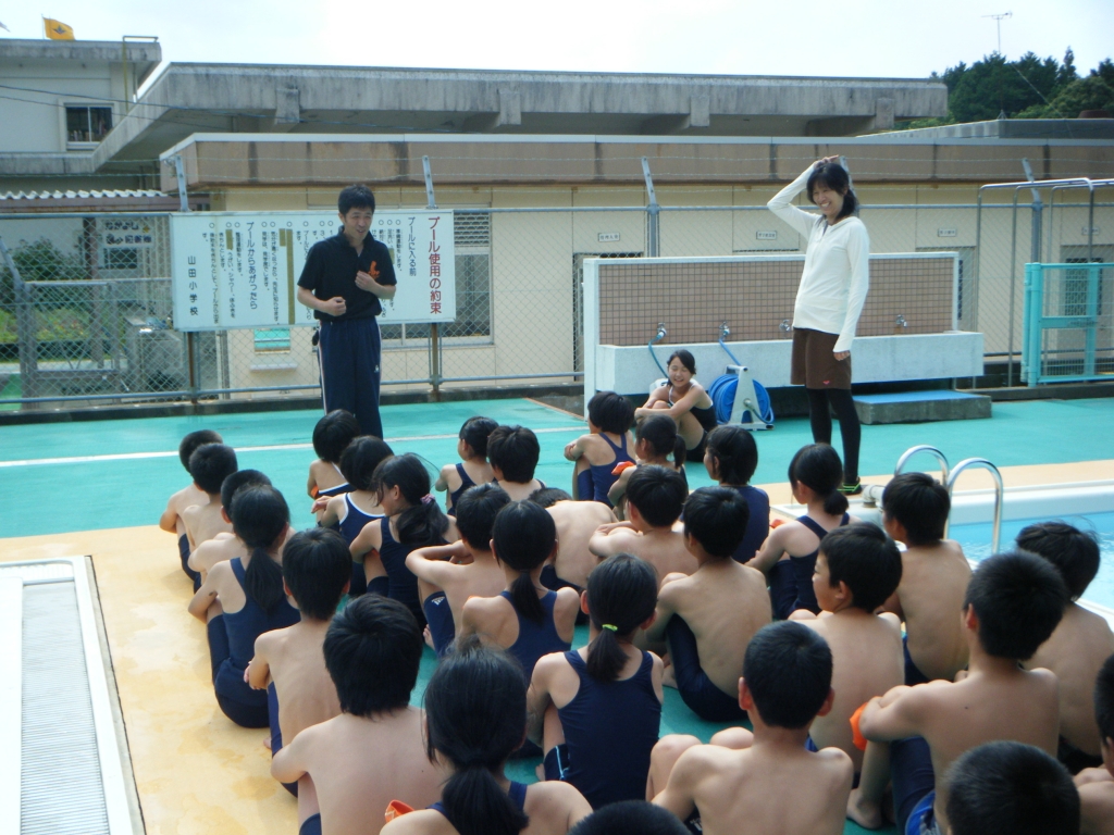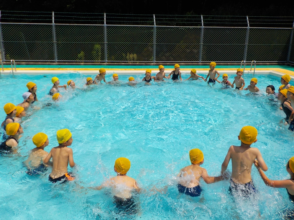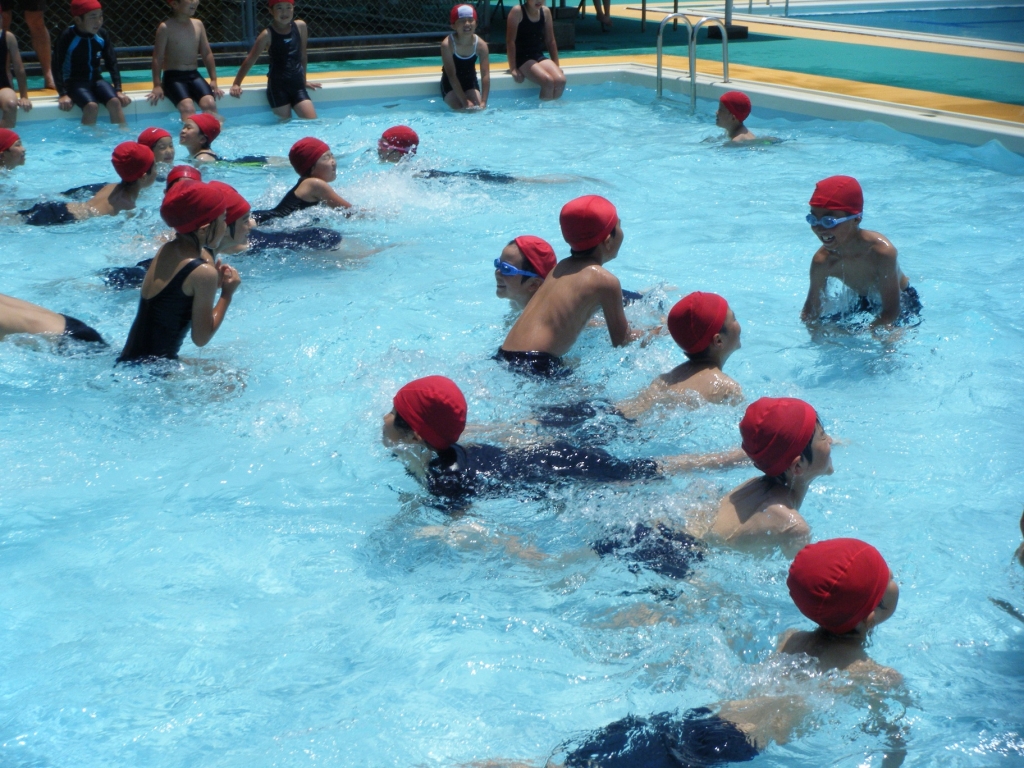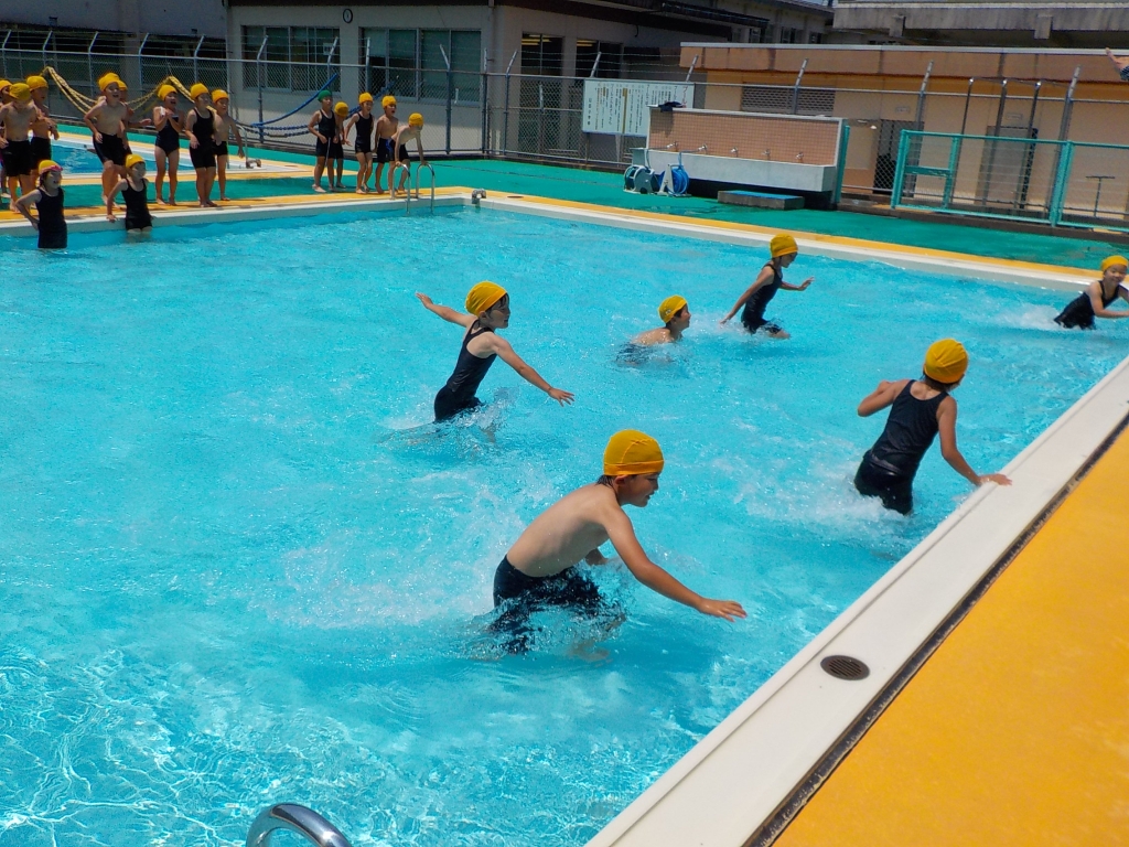 子どもたちにとっては、待ちに待った水泳の学習であり、「冷たい!!」や「気持ちいい」という楽しそうな歓声がプールに響いていました。