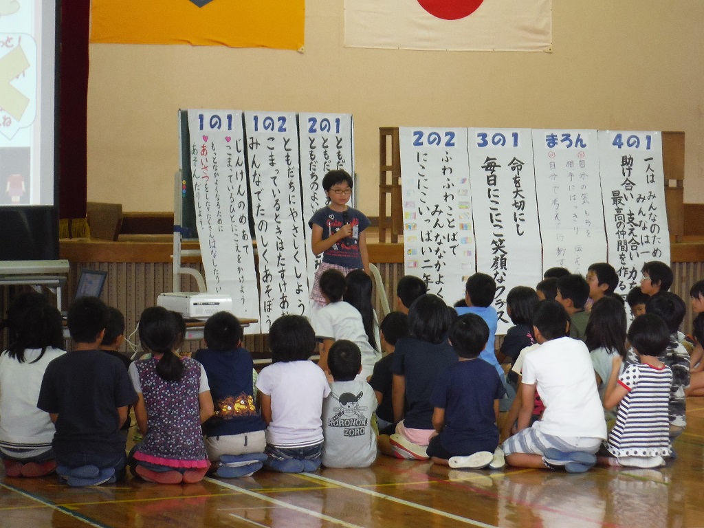 次に、各学年から「人権目標」の発表がありました。各学年とも、これまでの自分たちの生活を振り返り、よりよく生活していくために、これからどうしていきたいのかをしっかりと発表することができました。
