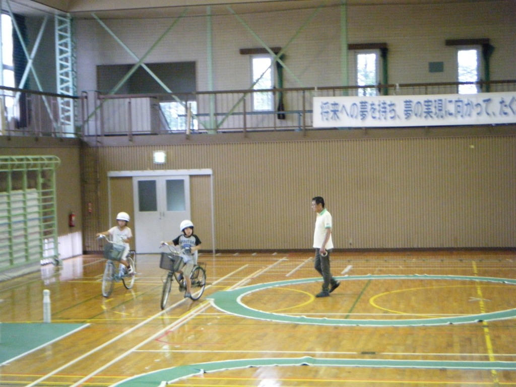 本日の放課後には、交通安全協会山江支部や人吉警察署の方々から自転車の乗り方について指導を受けていました。
