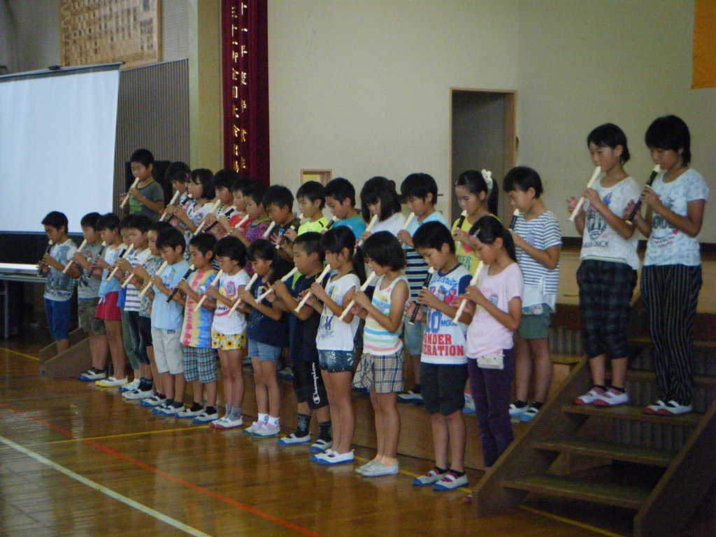 まずは、4年生の発表があり、大きな声で歌ったり、リコーダーを上手に演奏したりしました。堂々とした発表で、みんなから大きな拍手を受けていました。