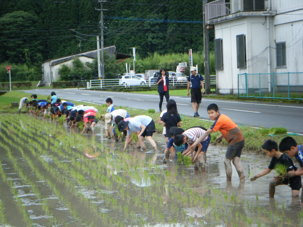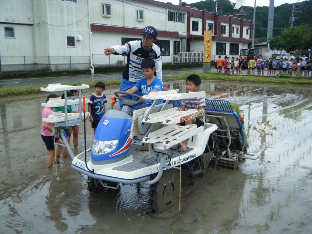 まずは、機械植えを体験し、そのあとに手植えをしました。初めて経験する子が多く、貴重な体験をすることができました。