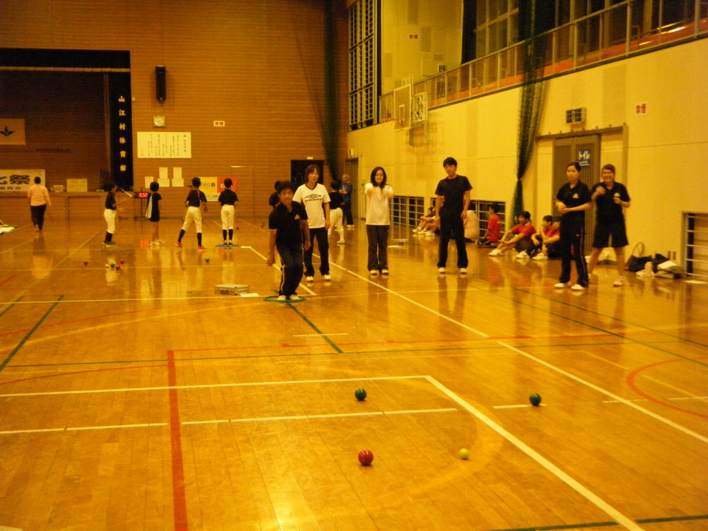 本日は、午後7時から山江村体育館でペタンク大会がありました。