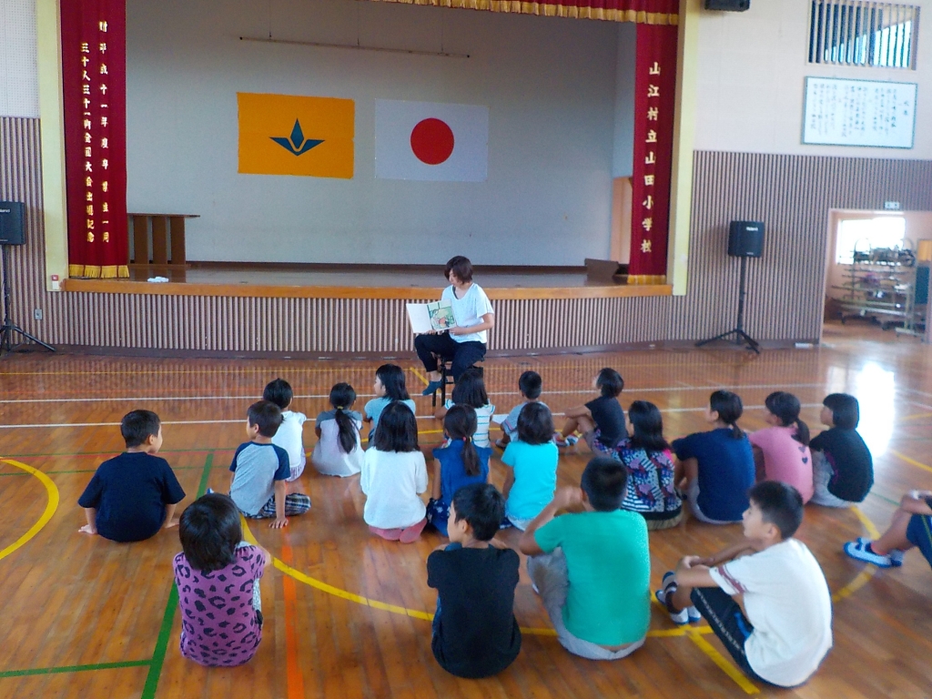 今日の朝自習は、読み聞かせがありました。体育館や音楽室、会議室や理科室など、全児童が読みたいと思う本が読まれる場所に行って、真剣にお話を聞くことができていました。