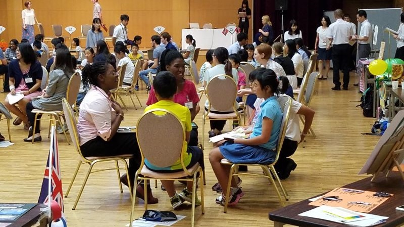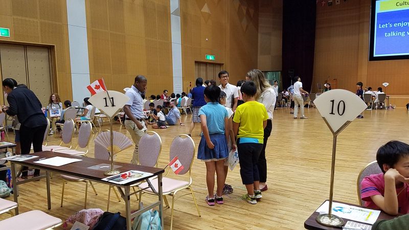 本校からもこのキャンプに参加し、「ゲームや自己紹介スタンプラリー、ALTとの異文化体験」など、様々な活動を通して、外国語を話したり、異文化にふれたりすることができました。