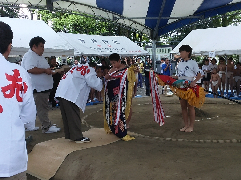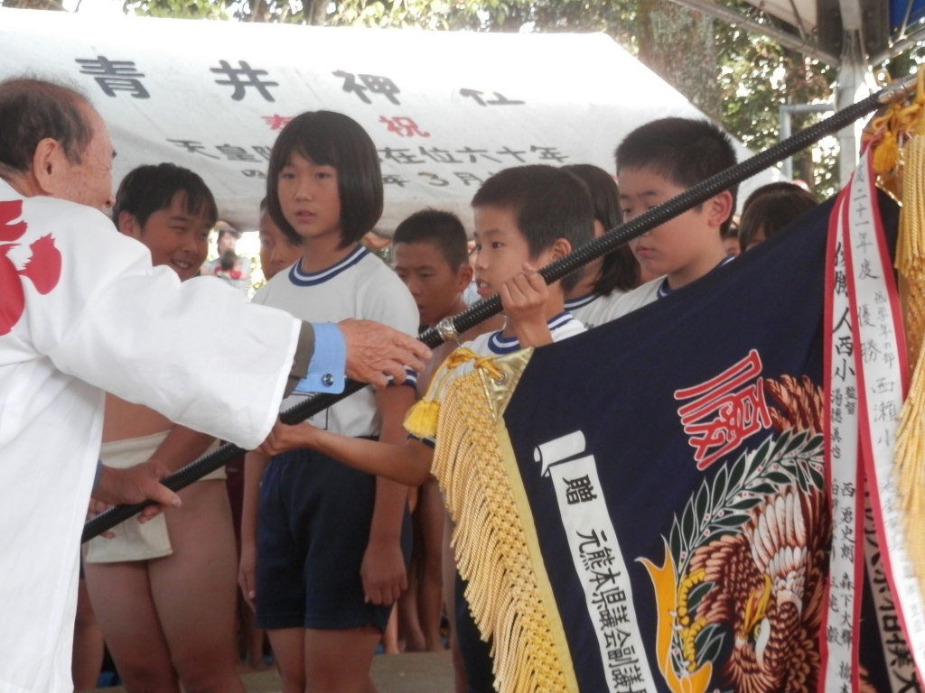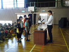 集会の初めに、山江村青年団主催による「わんぱく相撲大会」の優勝者・入賞者5名の表彰を行いました。
