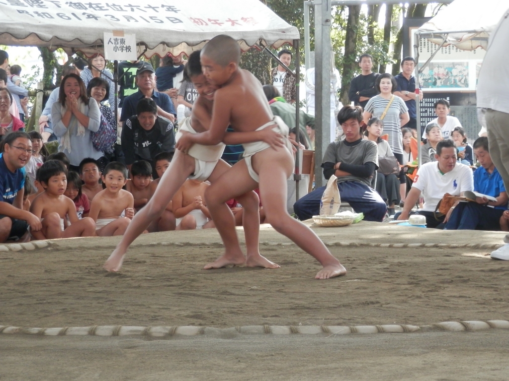 相撲大会では、個人戦、団体戦とも、子どもたちの白熱した取り組みが随所に見られ、観客席からも大きな声援がとんでいました。