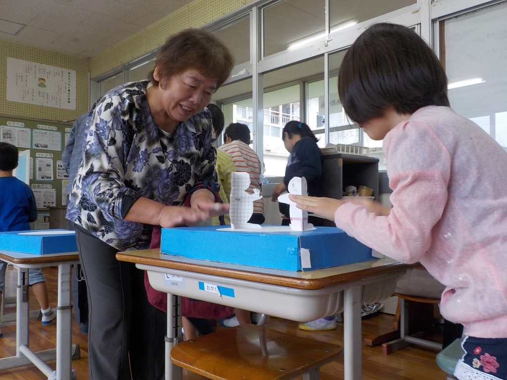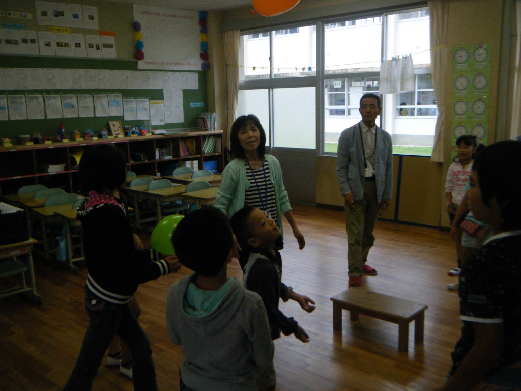 活動内容としては、1つの場所での活動時間を5分間と設定し、様々な遊び場所を、祖父母の方々と一緒にまわりました。