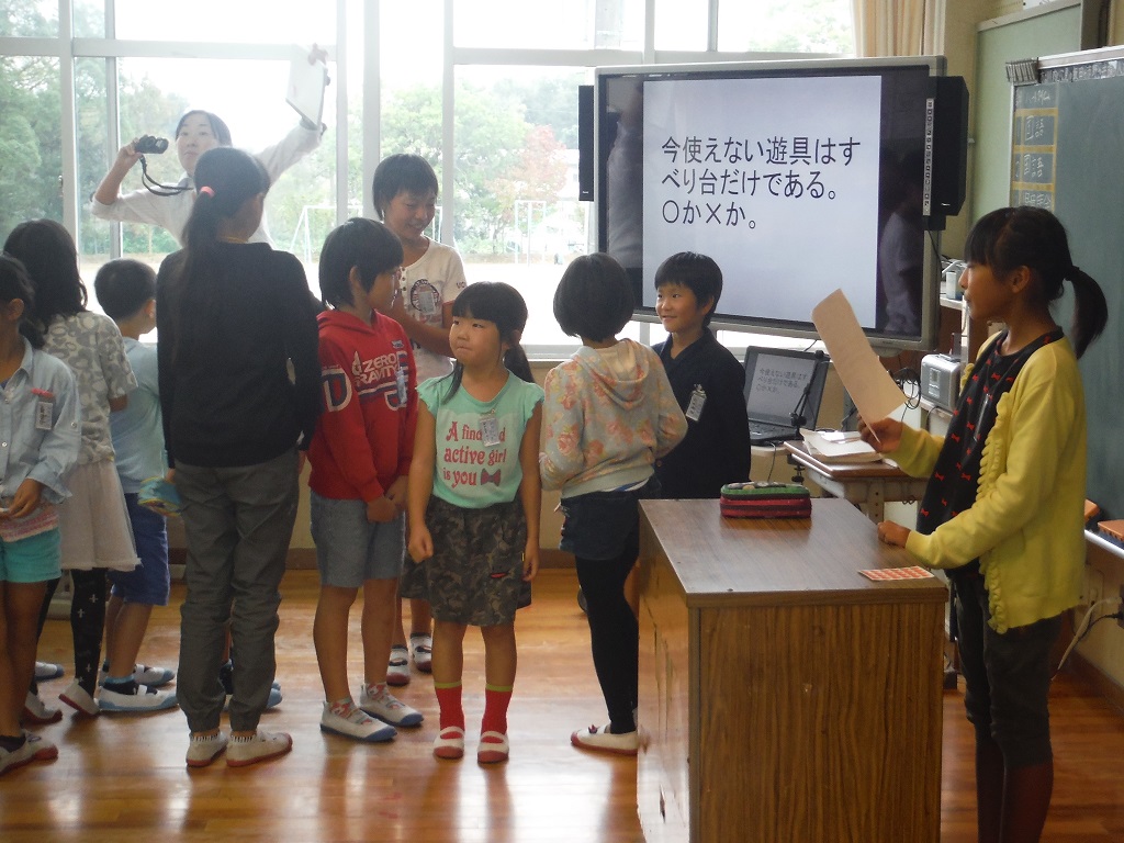 今日は児童集会で、「昔遊びウォークラリー」がありました。この日のために、子どもたちが「どんな遊びにするのか、どんな準備物が必要か」など、自主的に考えました。