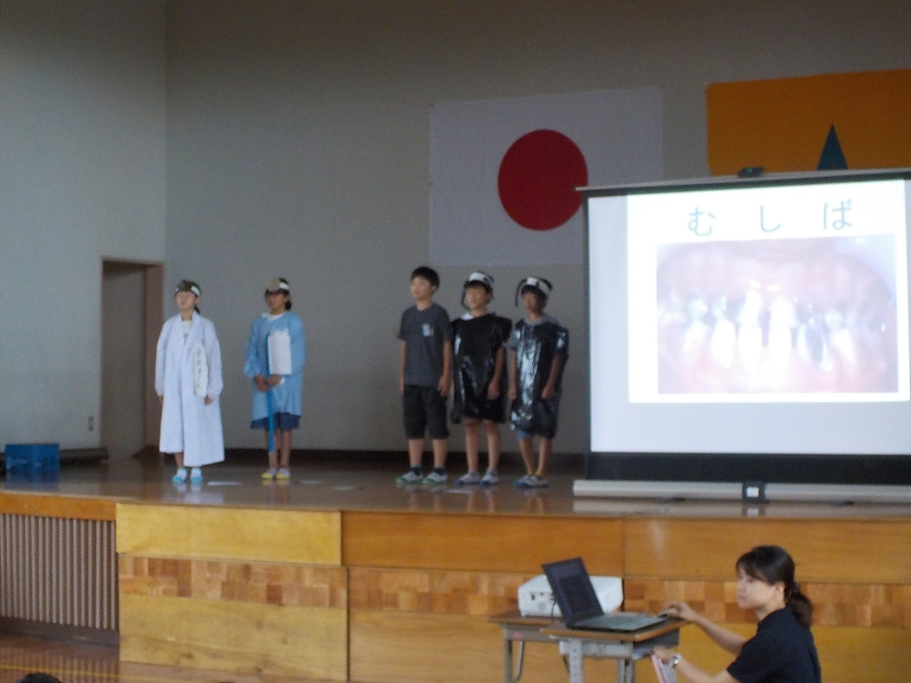 また、保健委員会からは、「歯磨きの大切さ」について劇を交えながらの発表でした。委員会の皆さんが発表してくれたことを、日頃の生活に生かしてほしいと思います。