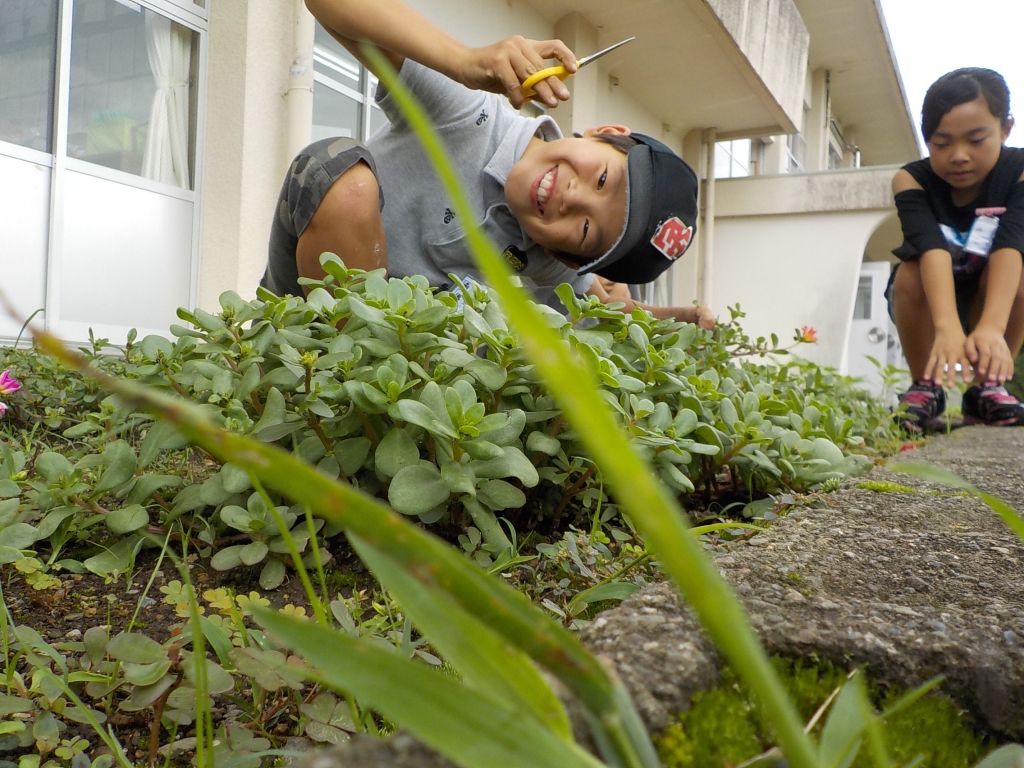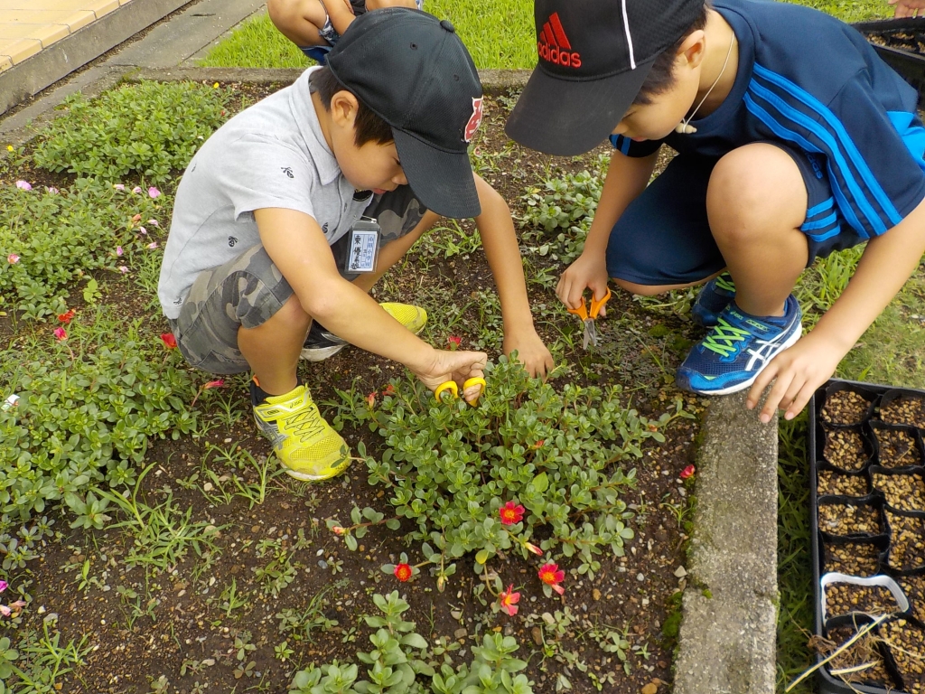 今日は昼休みのことを2つお伝えします。1つめは 栽培委員会が働いています。特に今日はポットにポーチュラカを植えていました。きれいに咲くといいですね。