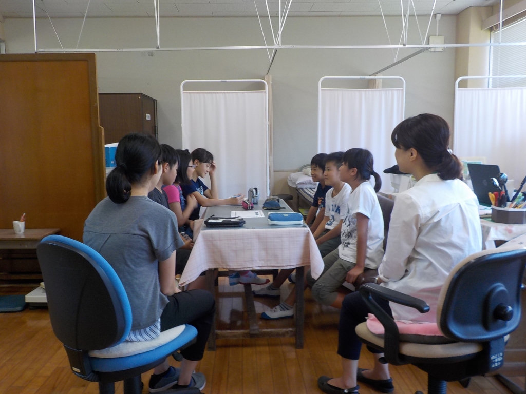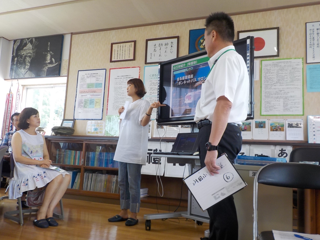 まずは校長室で山田小学校の学校説明を行い、「学校長からは学校経営、教務主任からは教育課程、研究主任からはICT機器の活用等」について説明をしました。