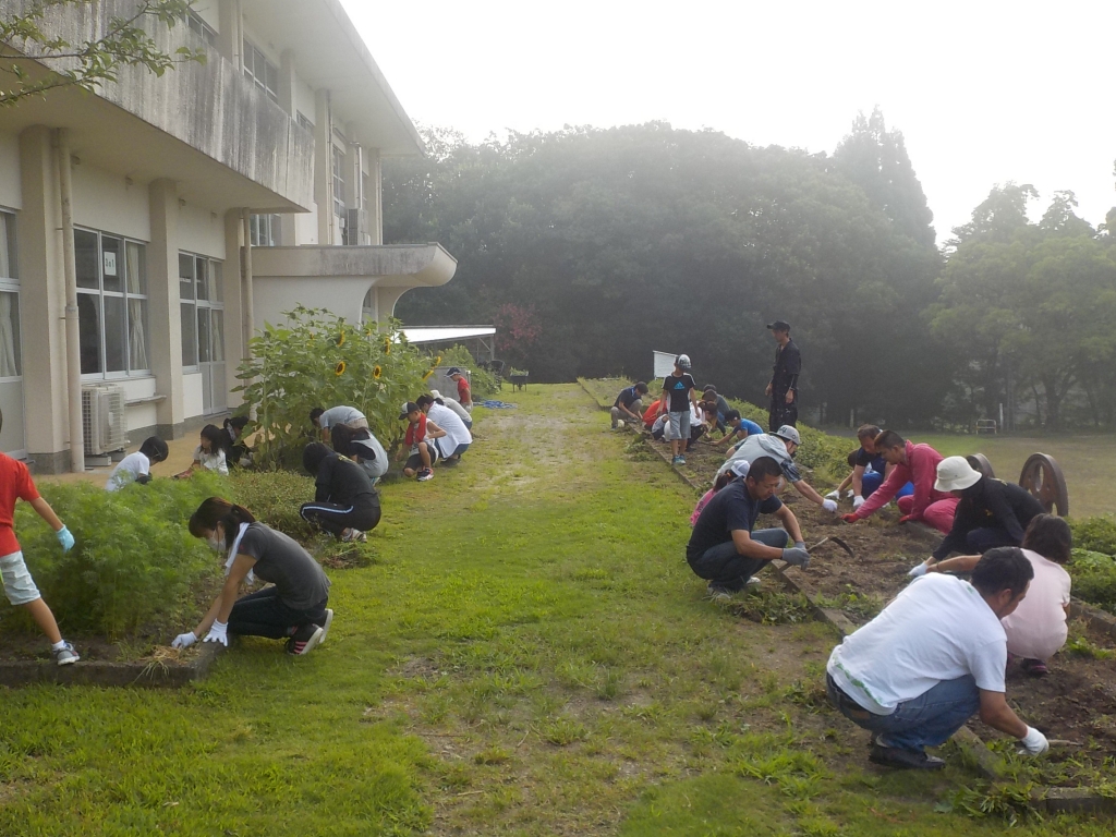 今日は、朝からPTA美化作業がありました。美化作業では、校庭や花壇を中心に除草をしていただき、作業後はとてもきれいになりました。本当にありがとうございました。お疲れ様でした!!