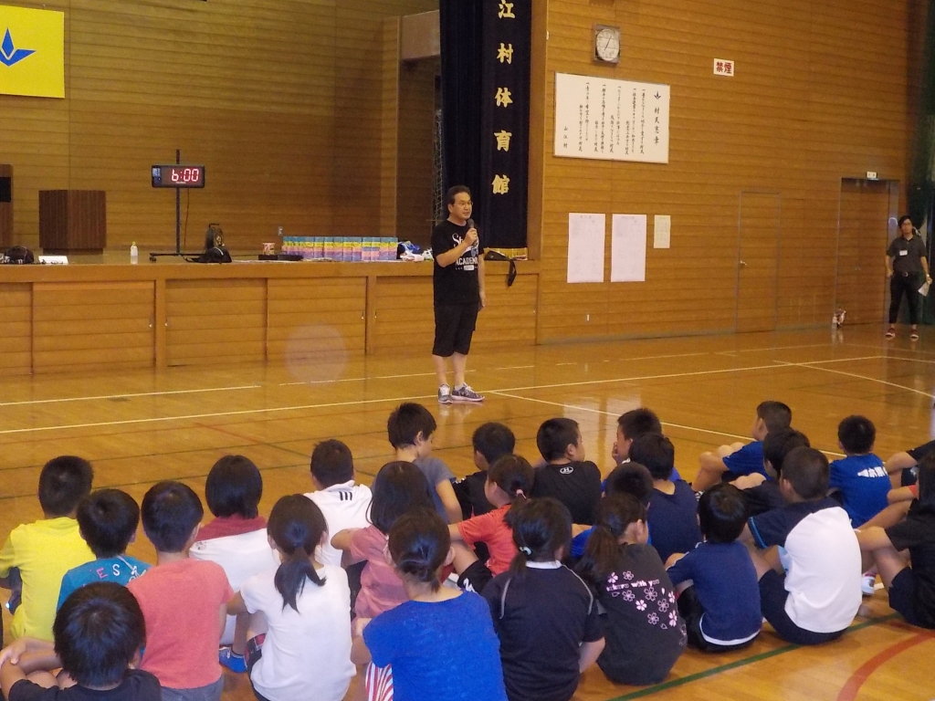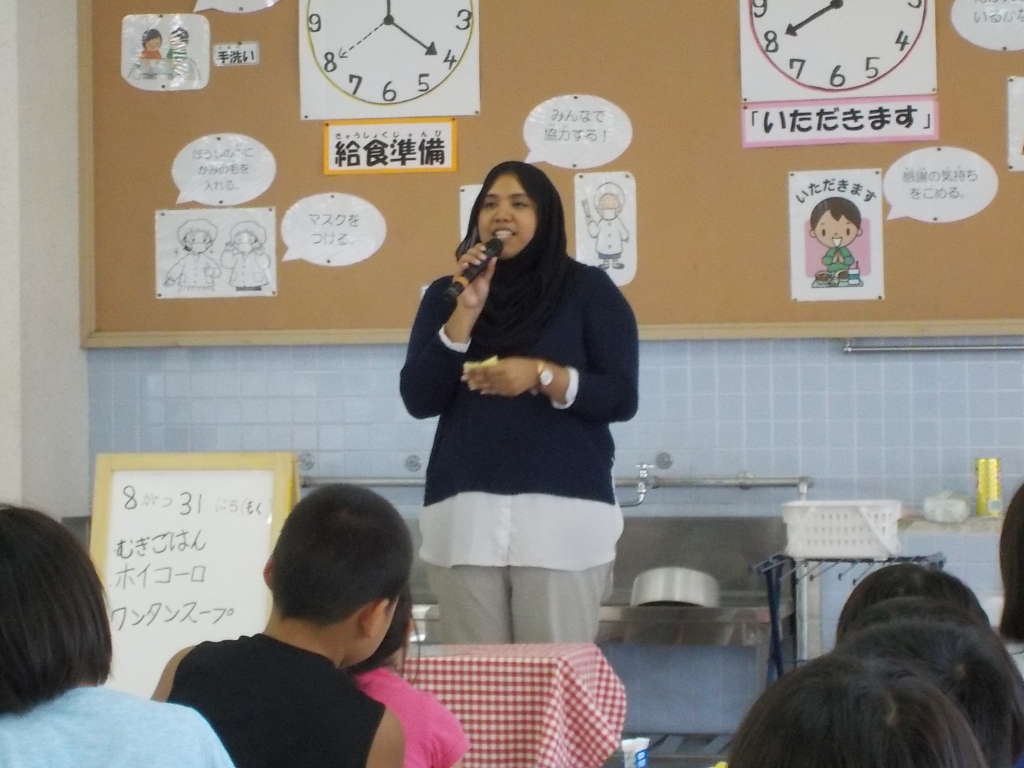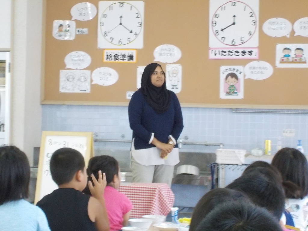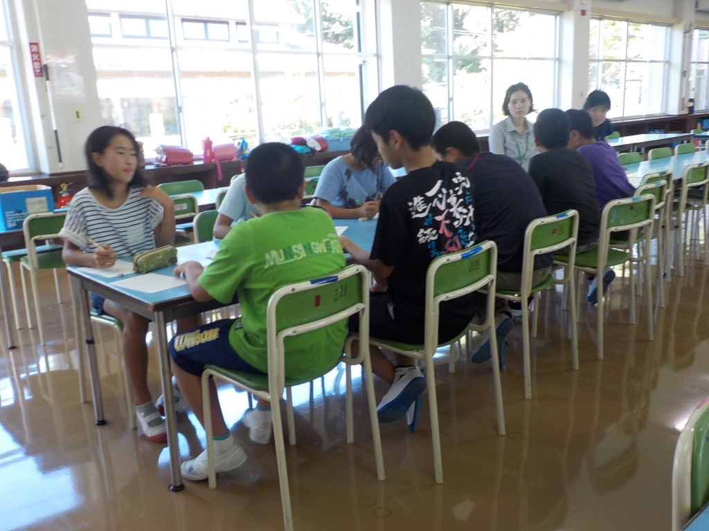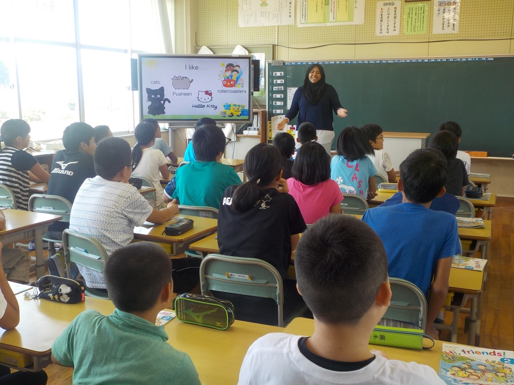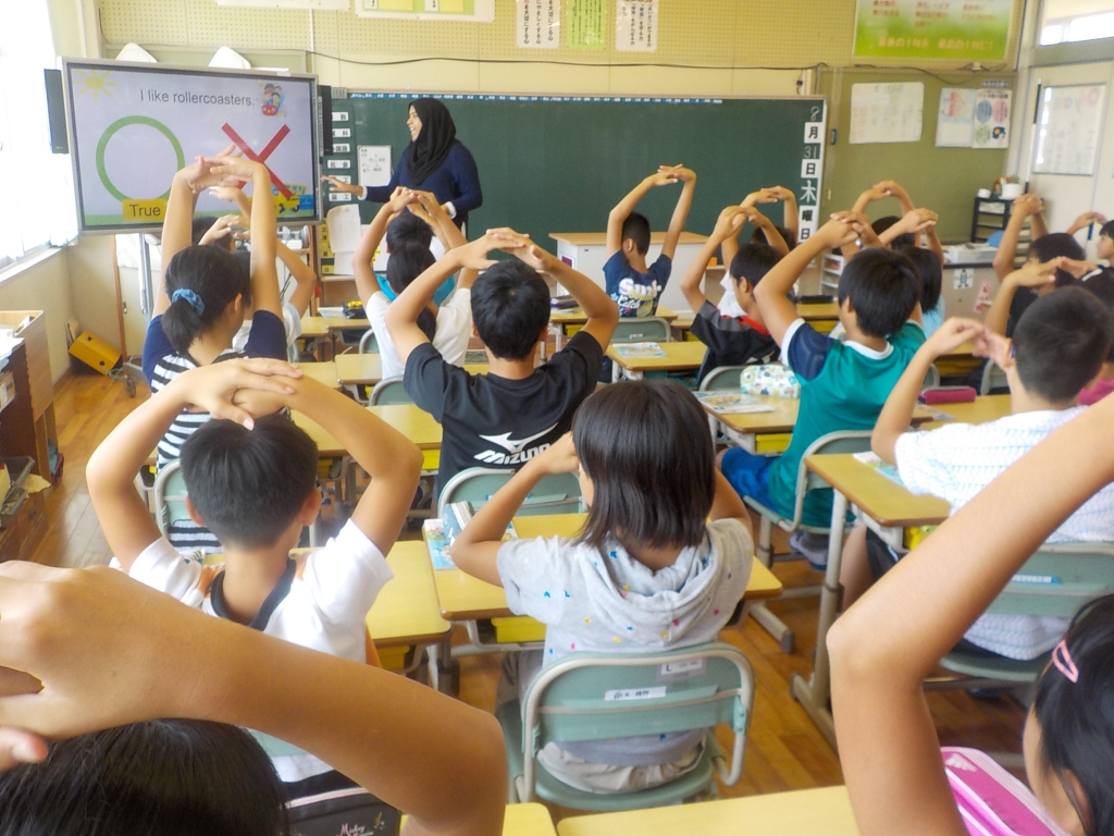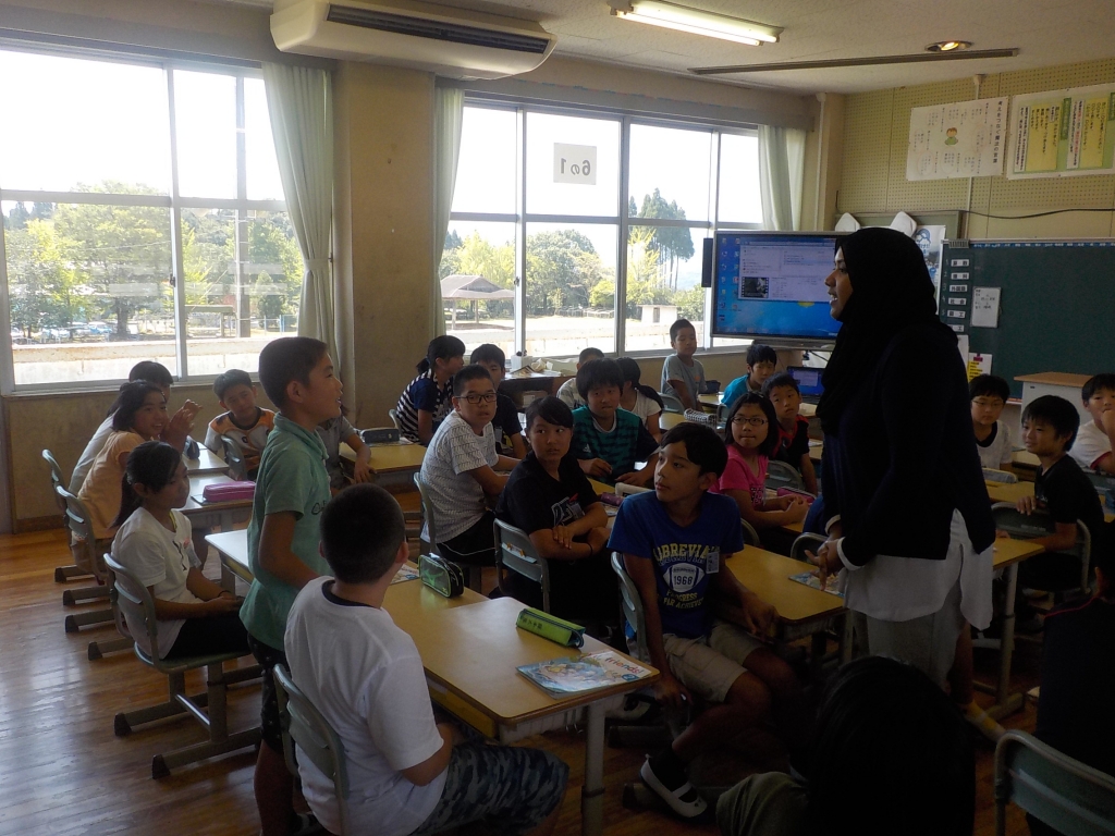 ALTに山田小学校の子どもたちの感想を聞くと、「ビックボイス(大きな声)、ポライト(礼儀正しい)、パワフル(元気)」と話してくれました。