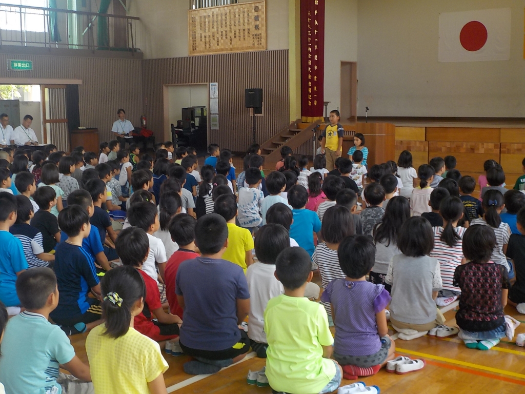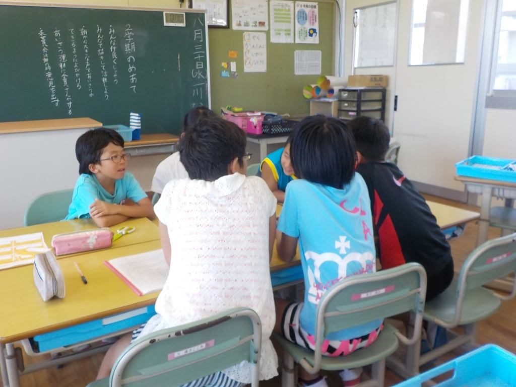 今日は、2学期の始業式があり、子どもたちにとっては、久しぶりの学校となりました。朝の教室内では、友だち同士で「夏休みの思い出」を話している姿があちらこちらで見られ、楽しそうな雰囲気でした。