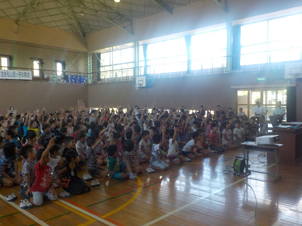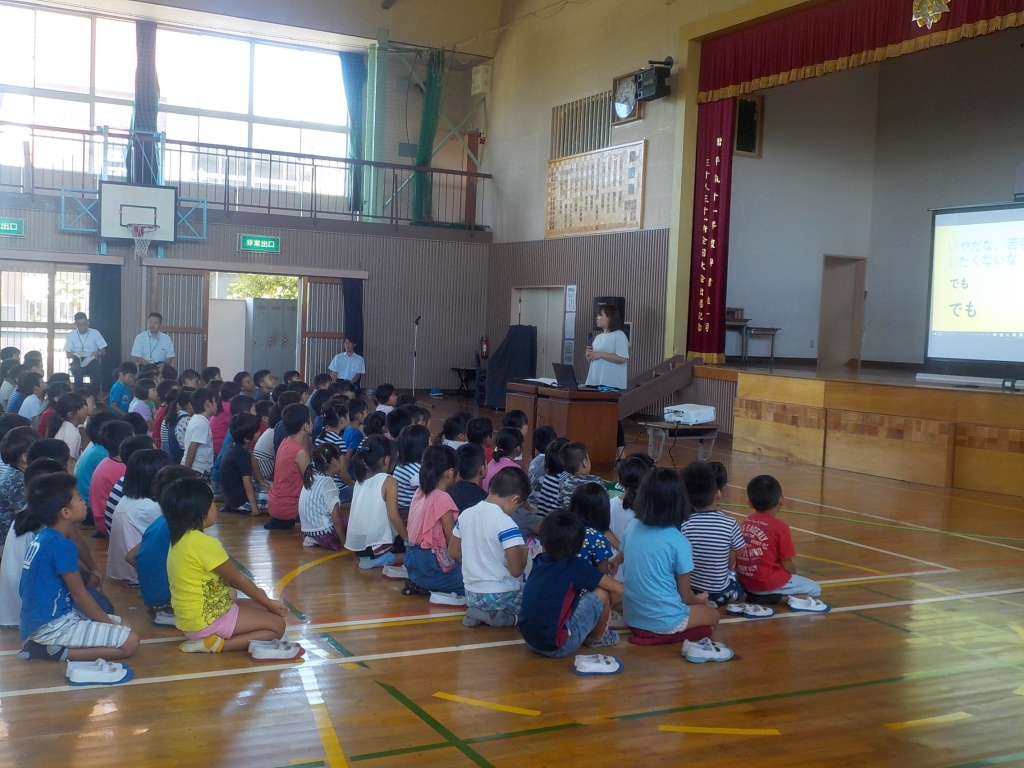 今日は、朝の時間に全校集会(5年担任からの話)が行われました。